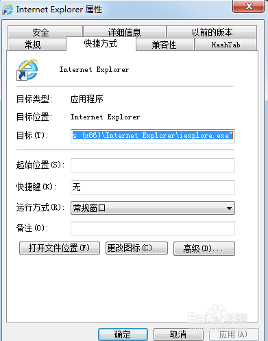 10.通過修改IE瀏覽器的主頁和刪除快捷方式中的目標(biāo)尾巴就可以解決這個(gè)2345劫持IE瀏覽器的問題了。