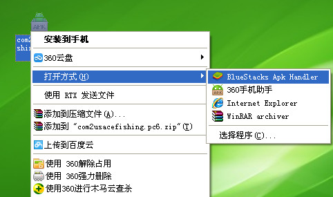 1、要玩釣魚發(fā)燒友電腦版,首先請(qǐng)大家下載安卓模擬器:http://sygqzm.com/downinfo/55246.html2、右鍵點(diǎn)擊apk文件,選擇以BlueStacks Apk Handler方式運(yùn)行