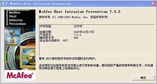 漢化者聲明:此漢化是根據(jù)《著作權(quán)法》有關(guān)規(guī)定,出于個(gè)人研究和學(xué)習(xí)目的,對(duì) McAfee 官方免費(fèi)提供試用的 HIP 7.0 的外掛語(yǔ)言文件中部分文字(外殼)進(jìn)行了翻譯,屬合理使用行為。禁止任何人將此用于非正版軟件或商業(yè)用途