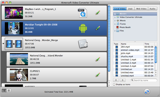 Video Converter Ultimate Aimersoft:這是一款Mac平臺的全能視頻格式轉換工具,是Mac OS X下視頻、音頻、DVD的最佳轉換工具,為您的下載、轉換、上傳、刻錄提供最大的便利。