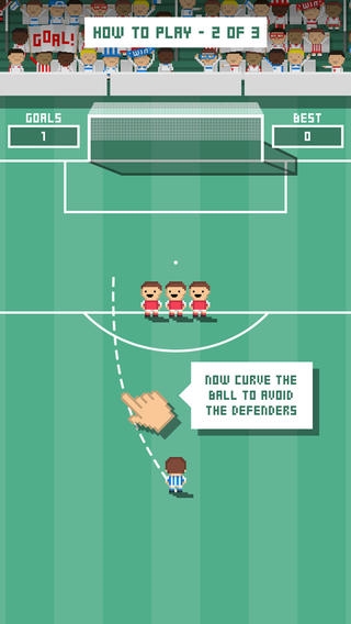小小射手安卓版的玩法很簡單,就是用手指劃出你要讓球飛行的路線。目標(biāo)是在時間限制內(nèi),踢進(jìn)盡可能多的球。游戲有兩大特點和以往的射門游戲不同:其一是弧線非常清晰,玩家可以從球的飛行軌跡判斷出自己之前操作的弧線是怎樣的。在踢球時,玩家劃出最初的一段飛行軌跡后,后面的軌跡由算法自己判斷,有時甚至?xí)叱鐾昝赖腃型弧線球,很是詭異。在某些關(guān)卡,還需要玩家將球踢到人墻邊緣,形成折射后入網(wǎng)。如果被難住了,就想想折射吧。游戲的第二個特點是鼓勵嘗試,在每個關(guān)卡的時間限制中,最多夠玩家進(jìn)行4次嘗試,球被門將沒收是不會導(dǎo)致比賽結(jié)束的,所以不要有壓力,盡管嘗試!這兩點結(jié)合使《小小射手》的娛樂價值非常高,我現(xiàn)在已經(jīng)很喜歡有事沒事來兩局打發(fā)時間了。當(dāng)然隨著關(guān)數(shù)的增加,游戲的難度也會增加,人墻的數(shù)量,分布,門將的移動等都會帶來挑戰(zhàn)難度的提升,大家準(zhǔn)備應(yīng)戰(zhàn)?。?