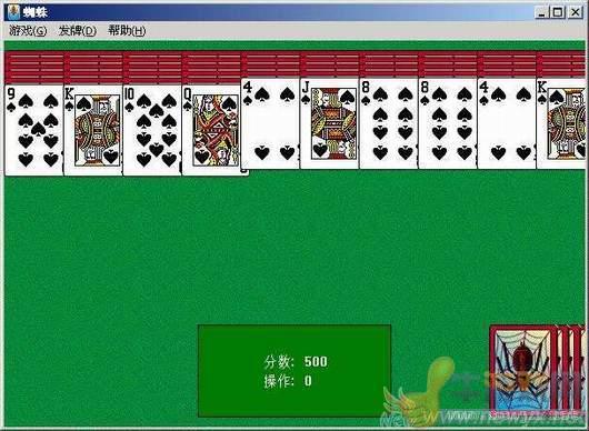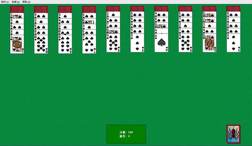 鼠標(biāo)單擊操作來(lái)玩蜘蛛紙牌,玩法很簡(jiǎn)單只要每一種類型的按照順序讓A-K連成串就能消去。[1]