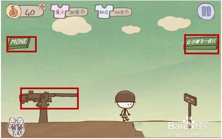 史上最坑爹的游戲攻略第四關(guān):這關(guān)也是注意的問題,看到紅框位置就是暫停按鈕下方有個灰色的字“MENU”了吧?點擊它就可以了,至于圖中的點我,就不要去管了。