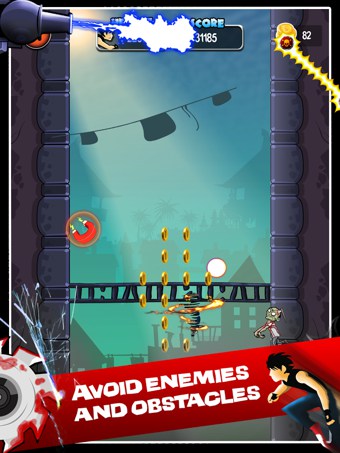 《跳躍逃跑 Escape Jump》是一款豎版的跑酷類游戲??焓褂秒p截棍!飛檐走壁!故事里的這位少俠雙手的火焰神功已非常了得。特別是在空中的時(shí)候,可以擊潰一切敵人!不過(guò),他這么兇為什么要怕這些戰(zhàn)5渣的僵尸呢?不管啦,反正趕快跑啊。跑慢了就會(huì)掉下去被僵尸XXOO啦~~