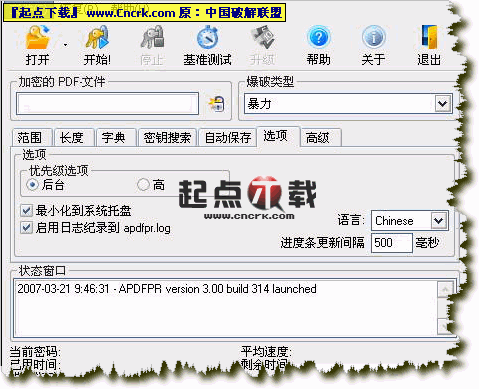 PDF Password Recovery(PDF密碼移除) V3.0.48.314 綠色漢化版 Advanced PDF Password Recovery可以Adobe Acrobat PDF文件的“所有者密碼”。未“所有者密碼”的PDF文件是不能被編輯和打印的。該程序也可以用FileOpen插件加密的文件??梢粤⒓赐瓿伞:蟮奈募梢杂酶鞣NPDF瀏覽器(例如Adobe Acrobat Reader)閱讀而無任何限制。