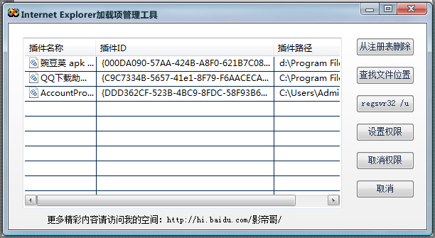 IE加載項管理工具還您一個清爽整潔的IE瀏覽環(huán)境。當遇見頑固的惡意插件無法刪除時,可以對其權(quán)限進行修改,讓瀏覽器無權(quán)加載插件,這樣也就達到了刪除插件的目的了,Internet Explorer加載項管理工具是一款實用的瀏覽器管理軟件。【使用方法】