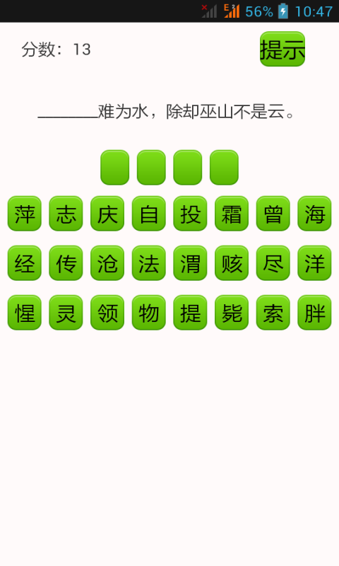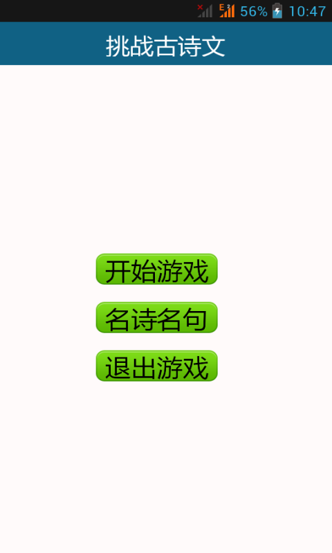 中華文學(xué),博大精深,古詩古文更是文學(xué)中的瑰寶。還記得我們所學(xué)的古詩古文,名言名句嗎?不妨來挑戰(zhàn)一下我們的挑戰(zhàn)古詩文安卓版游戲吧!我們更為玩家整理了上百首名詩名詞和上千句名詩名句,以及它們的作者和出處。讓你在游戲中更能更好地理解和記住這些知識。相信必定會對你大有裨益,讓你的文學(xué)修為更上一層。你還在等什么,快來加入我們把!【游戲特點】