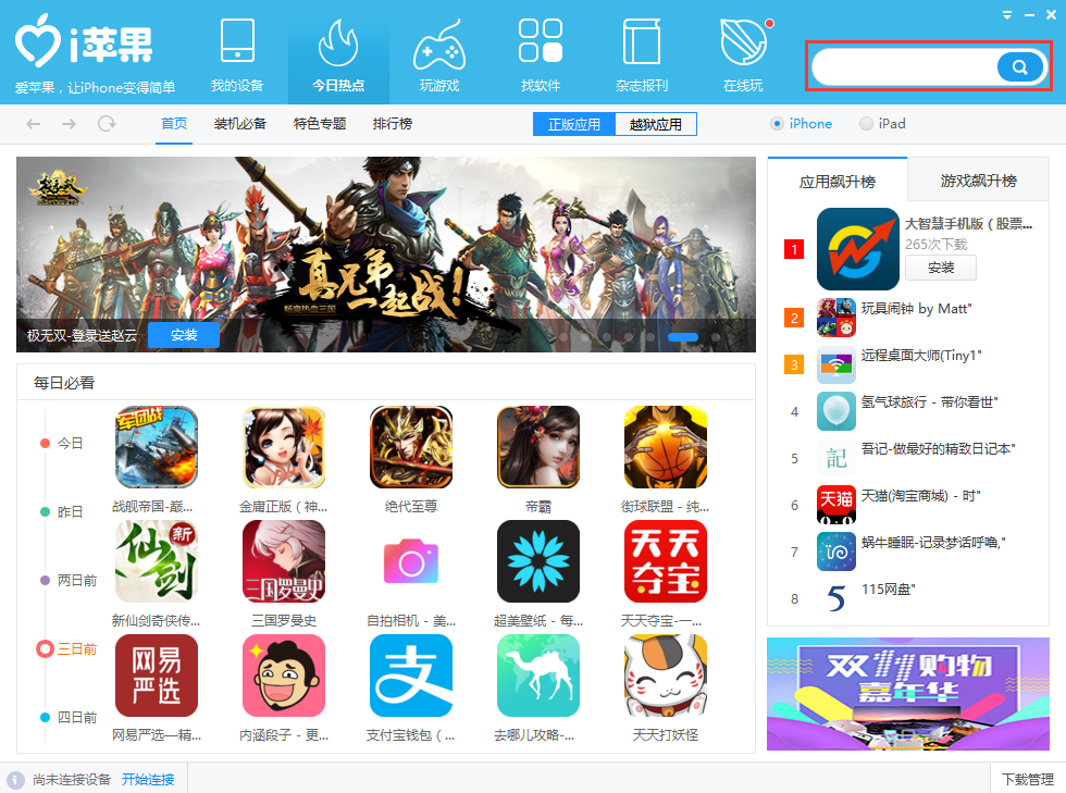 1、首先打開電腦中的i蘋果助手并將我們的iPhone與其進行連接;