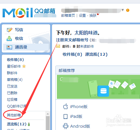 在瀏覽器中自動(dòng)打開(kāi)QQ郵箱,這里我們看到左側(cè)的導(dǎo)航欄中,有一個(gè)其他郵箱的內(nèi)容,見(jiàn)下圖。
