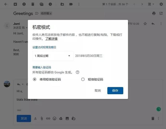 新版 Gmail 中還新增了機(jī)密模式。在寫(xiě)信前啟用該功能,收件人將無(wú)法轉(zhuǎn)發(fā)電子郵件內(nèi)容,也不能進(jìn)行復(fù)制/粘貼、下載或打印操作。