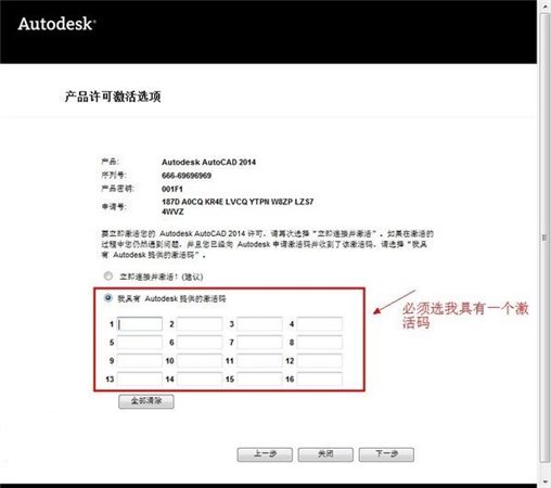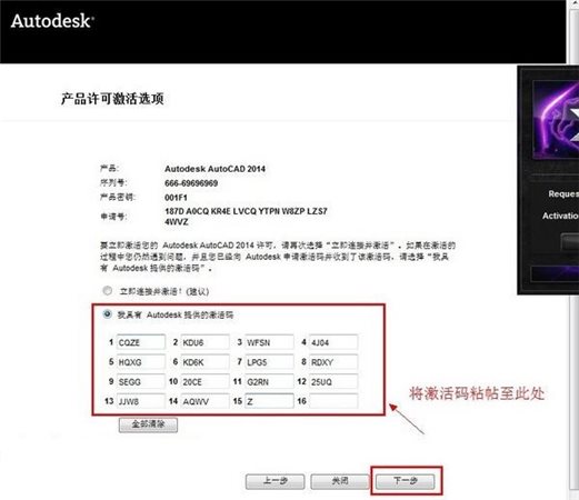 最后復(fù)制Activation中的激活碼至“輸入激活碼”欄中,并點擊下一步完成激活,這樣就完成了Autodesk產(chǎn)品的注冊了。
