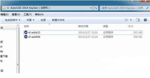 5、打開桌面你所下載的cad2014注冊機(jī),里面有兩個,請根據(jù)你電腦的操作系統(tǒng)來啟動對應(yīng)版本的XFORCE Keygen 32bits 或 64bits注冊機(jī)。