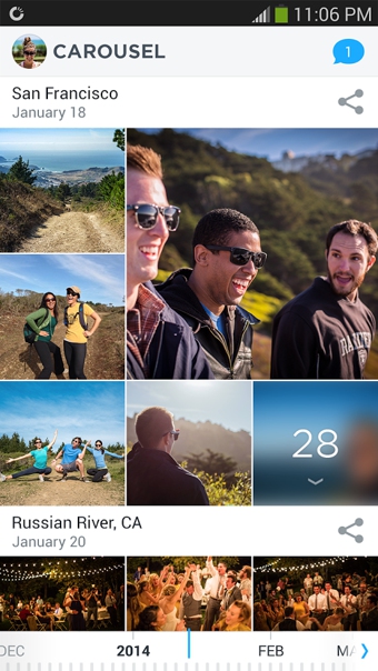 Carousel云端相冊安卓版是dropbox推出的一款app,可以方便的讀取本地和云端的照片,同時(shí)也可以隨時(shí)隨地的進(jìn)行備份。Carousel 目前僅推出英文版,但我們正在努力增加更多語言版本。敬請期待!