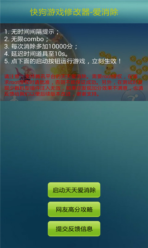 快狗修改器是一款專注于游戲數(shù)據(jù)修改的輔助工具,快狗游戲修改器愛消除就是非常好用的一款天天愛消除刷分輔助,使用它可以讓玩家在《天天愛消除》中每次消除完后都多加10000分,還有各種道具和無(wú)限combo等功能。