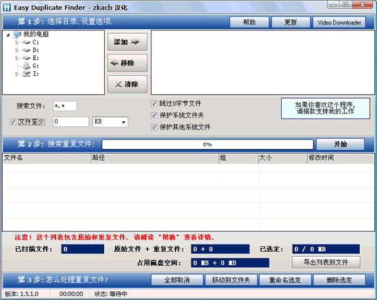 Easy Duplicate Finder V2.00 綠色特別版 你的系統(tǒng)里肯定有重復(fù)的文件,拿圖片做例子,你可能今天保存了一張一年之前已經(jīng)保存了的圖片。這個(gè)軟件有什么用呢?它們會(huì)幫你比較系統(tǒng)里的文件文件名,文件尺寸,修改日期和CRC32效驗(yàn)等等,幫你找出相同的文件。找出來(lái)有什么用?刪除!