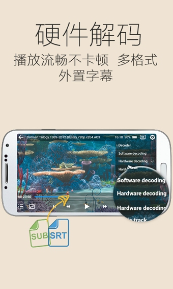 - 將安卓手機的強大的硬件發(fā)揮到極致,超強的硬件解碼,帶來流暢完美的1080P視頻播放。- 根據(jù)需求選擇軟件解碼、硬件解碼、硬件解碼+