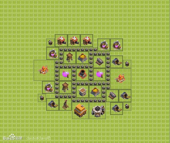 5、 搶錢已經(jīng)漸漸地找到了自己的思路與理解,自己喜歡的兵種搭配也已經(jīng)建立,4本滿建筑,你升級(jí)到五本了。依舊首先推薦一個(gè)5本防守陣型。