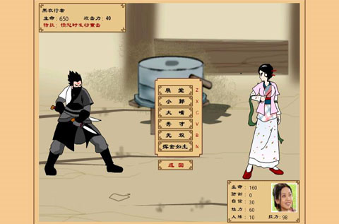 5、關(guān)于PK練級(jí)得方法,這次的游戲最大亮點(diǎn)就是除了小貝全體上陣,每人都有看家絕技了。大嘴用來加血,加防,老白還是低攻擊+定身(大概有5%的幾率是定不了身,適合當(dāng)二攻)。小郭依然是最高攻擊力(主攻手不二人選),掌柜的自己也有了攻擊招數(shù)(真是一擲千金,可是效果一般,錢太多、血也太多的時(shí)候可以扔著玩幾回合)。無雙的攻擊不高,但是加防而且有機(jī)會(huì)出現(xiàn)雙倍傷害(三攻手)。最后必須提到的是秀才,他是這個(gè)游戲的練級(jí)“特攻手”,把秀才和小郭的好感培養(yǎng)到100(打烊后選擇約會(huì)有50%幾率遇到秀才也要去,選擇讓他們?nèi)ィ托」暮酶袝?huì)加5,如此20次之后。)小郭會(huì)有終極絕技海誓山盟!非常牛的技能,最后打那個(gè)公孫云龍的時(shí)候能打掉1000左右的血。使用方法很簡(jiǎn)單,在練級(jí)PK的時(shí)候選擇后發(fā)--選擇秀才,小郭就會(huì)英雄救美。