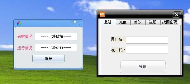 1、打開小米帳號綜合工具,然后打開一個(gè)fuckyou.exe破解程序,會自動進(jìn)行破解