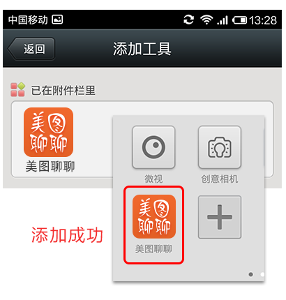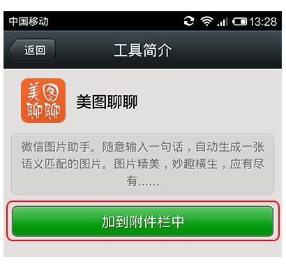 4.點(diǎn)擊"加到附加欄中",之后,美圖聊聊就被添加了微信中。