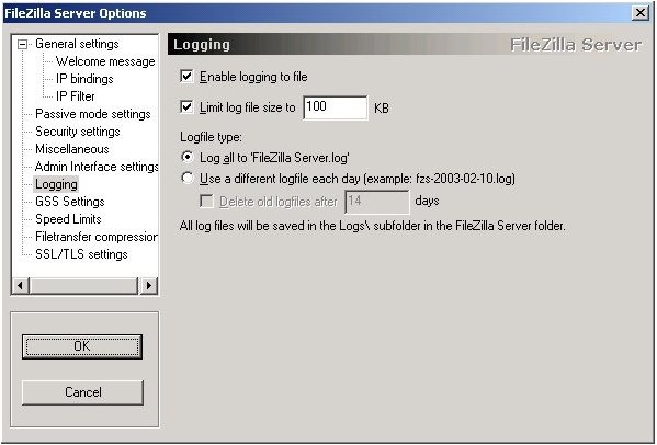 第5步、Logging(日志):設(shè)定是否啟用日志記錄功能以及日志文件大小和文件名。