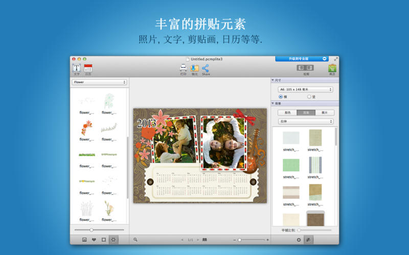 拼貼大師3免費(fèi)版擁有40+模板和數(shù)百藝術(shù)資源,豐富的拼貼元素、廣泛的拼貼裝飾選擇,是Mac OS X系統(tǒng)下一款功能強(qiáng)大且使用簡(jiǎn)單的照片拼貼制作工具, 它可以讓您快速制作照片拼貼, 剪貼簿, 賀卡, 照片日歷, 相冊(cè), 海報(bào)等.讓您將生活中的美好瞬間變成精美的照片拼貼和親朋好友分享.
