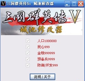 三國群英傳5城池修改器下載+5 綠色版 軟件大?。?/span>383KB