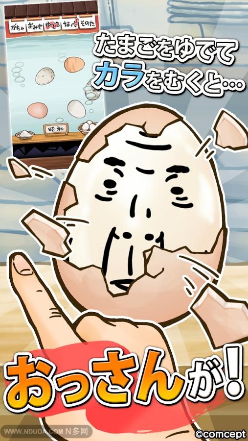 大叔雞蛋暗組紅包游戲主要是將雞蛋丟入滾水中,等雞蛋煮熟后將殼剝開,就可以看到雞蛋上面印著中年大叔的臉。玩家的目的只有一個(gè),那就是“做水煮蛋”。畫面上方有并排著各種選單,最基本的就是“煮”。在此選擇要煮的雞蛋后,就會(huì)將雞蛋丟入到熱水里面,接下來只要等待到規(guī)定時(shí)間就可以了。【游戲特點(diǎn)】