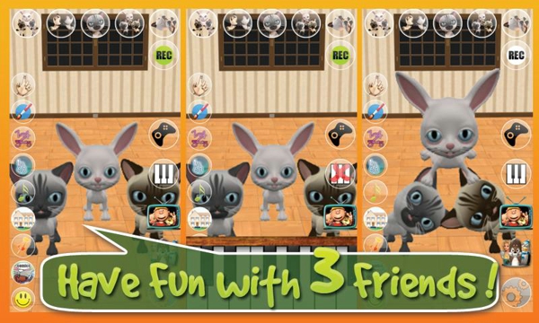 《會(huì)說(shuō)話的三只小貓 Talking 3 Friends Cats & Bunny》是一款休閑游戲,與3好友貓和兔子。他們的回答與她滑稽的聲音和你說(shuō)什么或你的觸摸產(chǎn)生反應(yīng)。有4個(gè)令人興奮的內(nèi)部游戲,多層次的發(fā)揮!花一些時(shí)間與這三個(gè)小的朋友和他們的偉大的游戲活動(dòng)。- 漫畫及卡通片:我們有漫畫,涉及不同的主題,例如:假期,意外事故,家庭,熊和魚,還有更多。