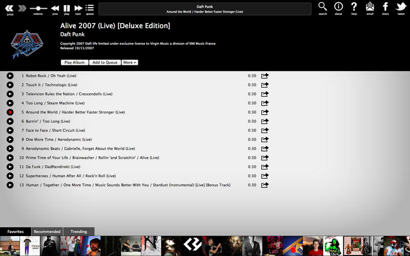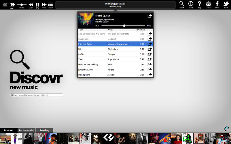 當你發(fā)現(xiàn)一個你喜歡的樂隊或歌手時,你可以通過Twitter或Facebook與朋友共享,或者把他們保存到你的收藏夾中。