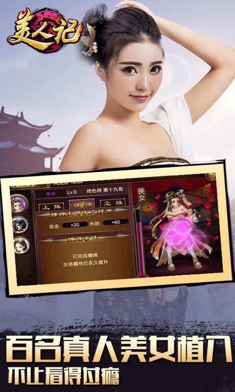 百名真人美女植入樂(lè)趣多此次開(kāi)測(cè)之際,《美人記》將啟動(dòng)真人美女泛娛樂(lè)營(yíng)銷(xiāo),將百名真人美女天團(tuán)植入游戲中。每一個(gè)美女真人照片都采用頂級(jí)攝影進(jìn)行拍攝,并且邀請(qǐng)著名造型師、化妝師進(jìn)行造型、顏面打造。為玩家呈現(xiàn)一個(gè)電影大片級(jí)的真人素材,讓你獲得最頂級(jí)的享受。