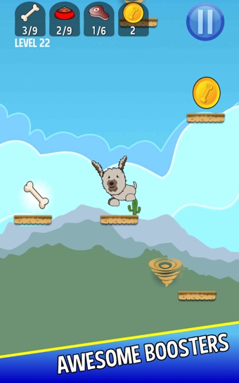 狗蛋的快樂之旅安卓版是一款卡通風(fēng)格的休閑游戲,玩法非常的簡單,玩家只需控制可愛的狗蛋不斷的向上跳躍,獲得沿路的金幣和食物,到達(dá)勝利的終點(diǎn)即可過關(guān)。