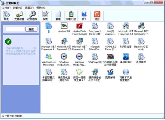 非常好用的卸載工具軟件。你是否常常為了一大堆無用的軟件發(fā)愁?是否為了經(jīng)常安裝了軟件卻沒辦法卸載掉?是否為系統(tǒng)自帶的卸載程序太差而煩心?現(xiàn)在有了全能卸載王,您的問題就交給它來解決