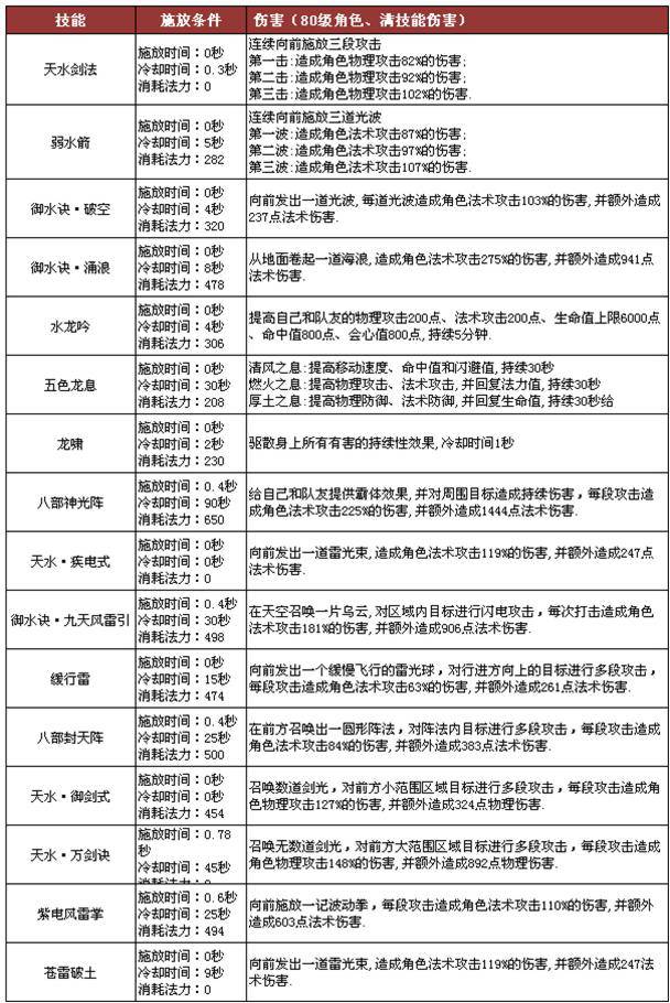 龍女職業(yè)技能(80級(jí)角色滿技能數(shù)值)