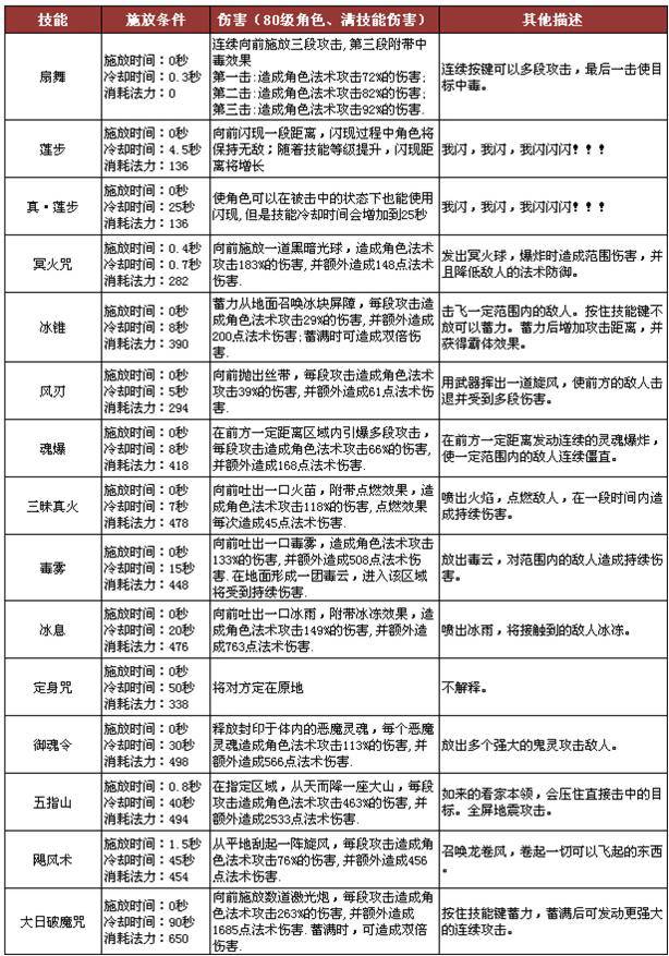 蛇精職業(yè)技能(80級(jí)角色滿技能數(shù)值)