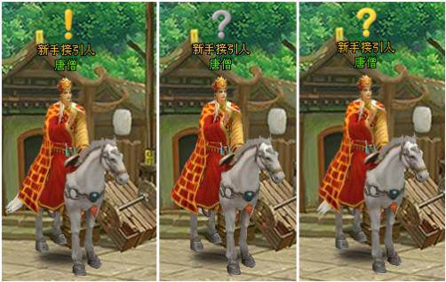 小貼士:NPC頭頂標(biāo)識(shí),黃色嘆號(hào)為有可接任務(wù),灰色問(wèn)號(hào)為有待完成任務(wù),黃色問(wèn)號(hào)為有可交付的任務(wù)。