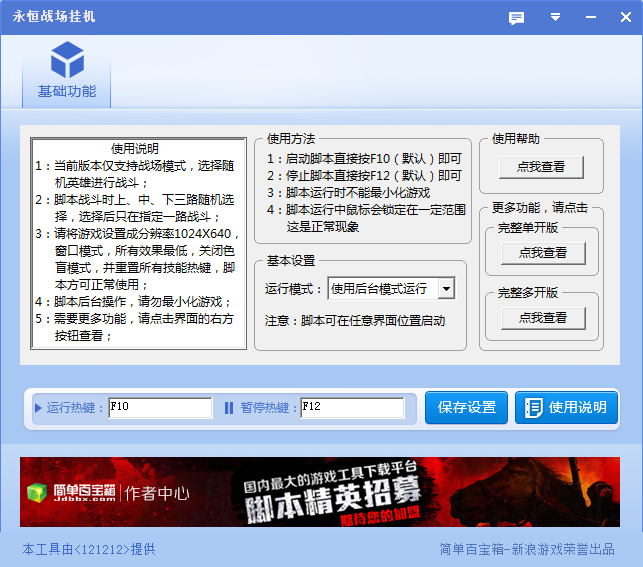 1:?jiǎn)?dòng)腳本直接按F10(默認(rèn))即可2:停止腳本直接按F12(默認(rèn))即可