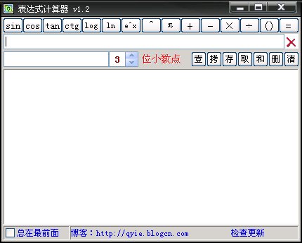 表達(dá)式計(jì)算器 V1.5 綠色版 常用的表達(dá)式計(jì)算,界面簡(jiǎn)潔精美,Vista黑色皮膚。功能支持括號(hào)深層次嵌套,支持計(jì)算結(jié)果重新調(diào)用,支持計(jì)算結(jié)果列表保存到文件,支持讀取歷史計(jì)算結(jié)果到列表,支持單獨(dú)刪除列表中一項(xiàng)內(nèi)容也可以全部刪