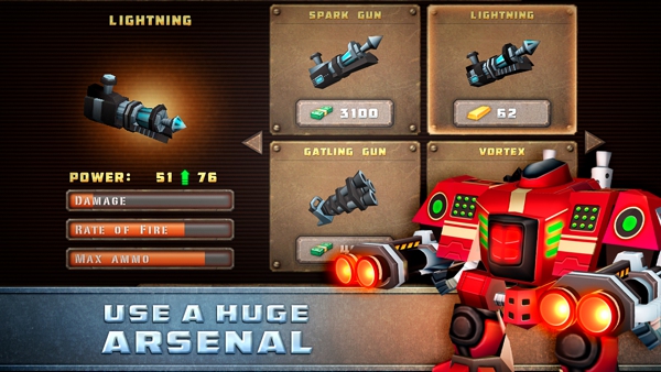 《鋼鐵混戰(zhàn) Steel Mayhem》在升級系統(tǒng)上做的算是比較精細(xì)的了。除了基本的機甲升級外,游戲中還有10種不同的武器供玩家選擇購買并升級。不僅如此,游戲中還為玩家準(zhǔn)備了消耗性道具的解鎖升級,增加了游戲的可玩性。不過在游戲中,小編發(fā)現(xiàn)了一個細(xì)節(jié),游戲中的所有新型機甲都只是換了個顏色而已,這樣真的沒問題嗎?