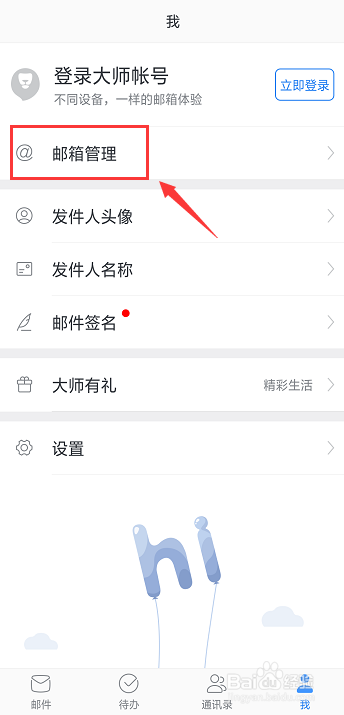 然后點(diǎn)擊【郵箱管理】,我們把它打開
