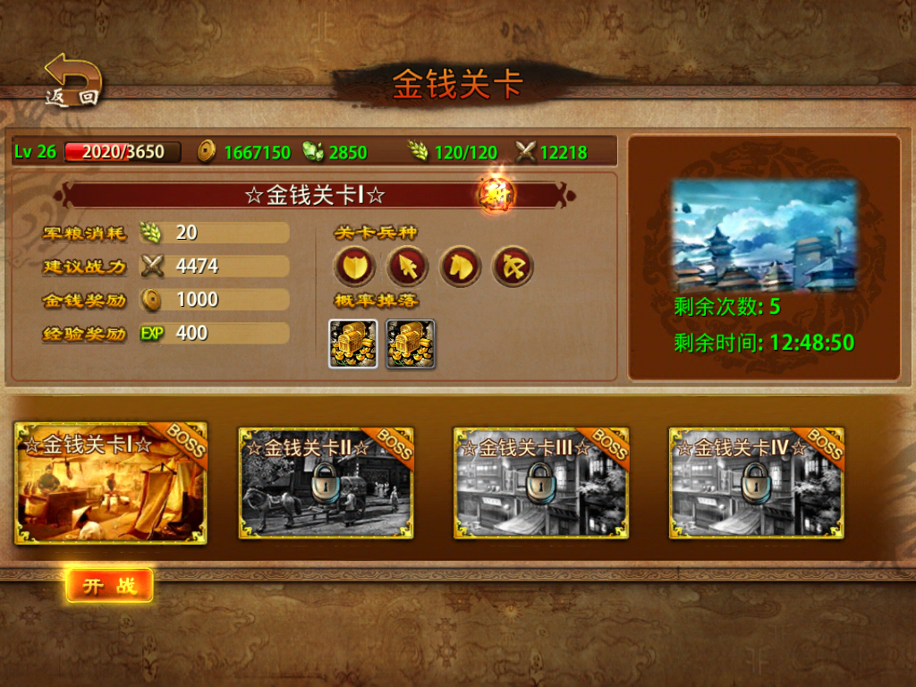 金錢與經(jīng)驗(yàn)試煉每周開啟4天,每次開啟可以試煉5次;