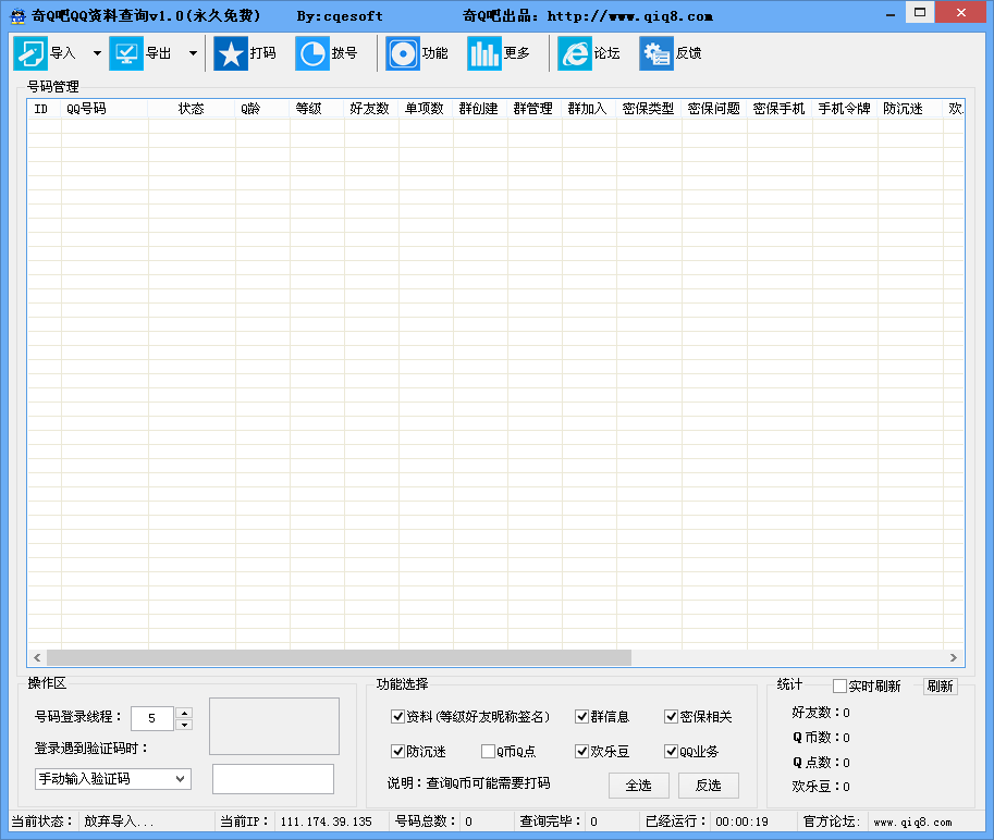 1.支持批量多線程登錄操作2.支持查詢資料(等級、好友、昵稱、簽名)