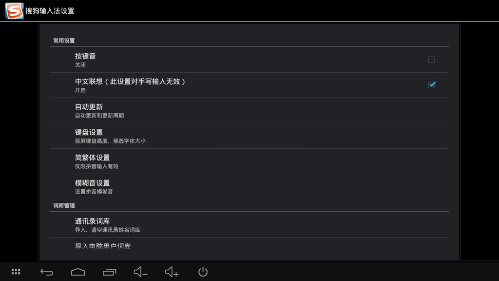 1.搜狗輸入法TV版繼承了搜狗輸入法PC版和手機(jī)版的優(yōu)秀品質(zhì)2.同時(shí)特別針對(duì)智能電視以及智能盒子等設(shè)備進(jìn)行了精心優(yōu)化
