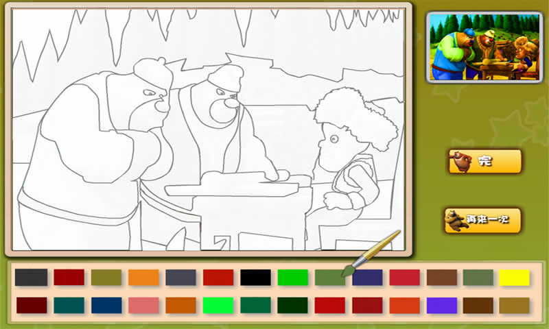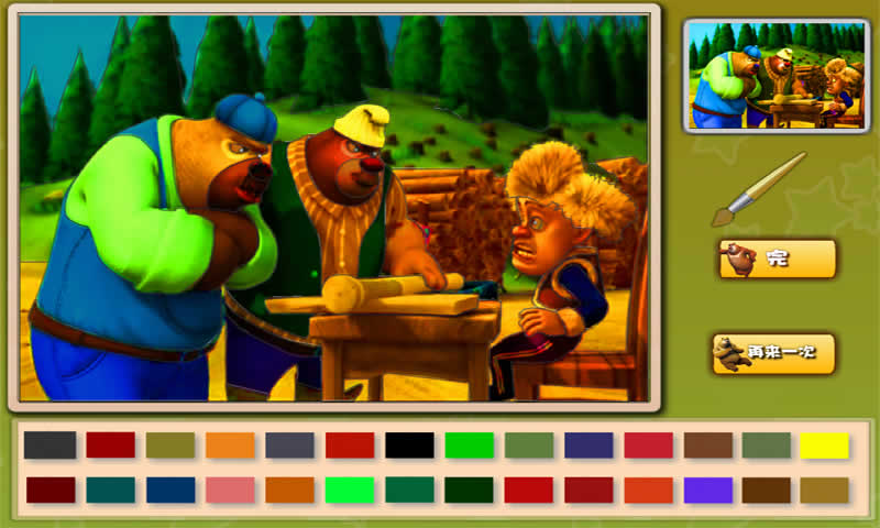 《熊出沒(méi)涂鴉》是一個(gè)非常有意思的游戲,它不是簡(jiǎn)單的填顏色,而是可以培養(yǎng)小盆友們對(duì)顏色的搭配是否有天賦,小盆友往往是不按規(guī)矩配色的,在小盆友的世界可能每一種顏色都有另一種蘊(yùn)意,當(dāng)然了,如果能還原成與左下角一模一樣的圖,那也算是一個(gè)很厲害的顏色大師咯!