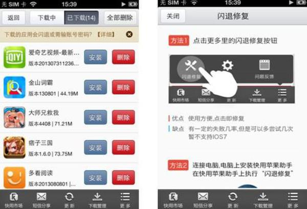 注:使用此方式安裝快用移動端的用戶,如果您的設(shè)備是第一次使用快用,安裝完成后,需使用快用pc端,執(zhí)行閃退修復(fù),才可正常使用。