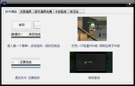 1、秒升滿級:進第1關,要簡單的,修改成功后,去打1個怪,看看有沒有升級,然后退出關卡,還原,保存。2、銀幣技能石頭:按下修改前,請檢查您現(xiàn)在擁有的硬幣加上重置返回的硬幣會不會超過 1.3億,如果超過封號。請在重置后點確定前還原,否則需等待1—3分鐘。