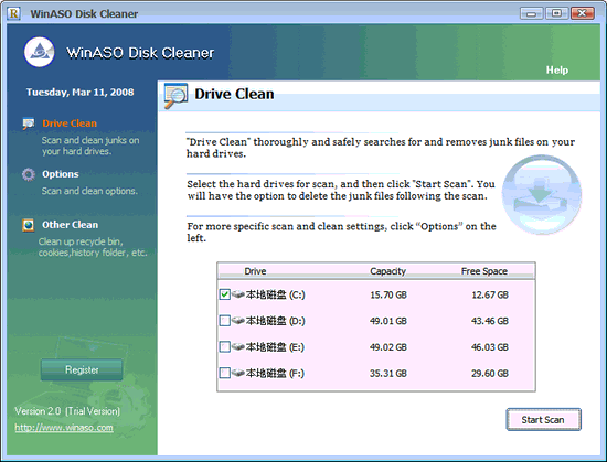 WinASO Disk Cleaner 是一款文件小、運(yùn)行速度快、不需繁復(fù)的操作,就可以很快速的為我們的計(jì)算機(jī)做磁盤清理的工作。不管是系統(tǒng)緩存盤、網(wǎng)頁緩存盤、上網(wǎng)記錄、Cookies…… 等,它都可以幫你做清除的動(dòng)作,而且還會(huì)列出計(jì)算機(jī)上,可供刪除有哪些、占用了多少硬盤空間以及有多少個(gè)檔。經(jīng)本程序清除之后,將大幅釋放您的硬盤空...