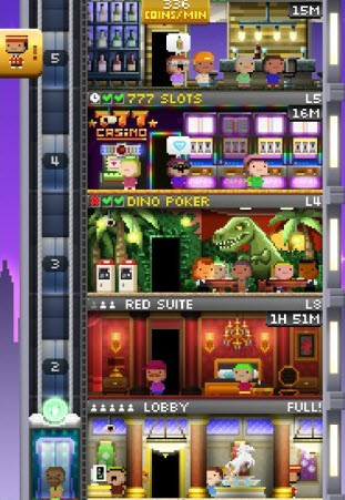 《小小摩天塔:維加斯》是三年前大熱的模擬經(jīng)營(yíng)游戲《小小摩天塔》的續(xù)作,不管是畫(huà)面還是玩法都延續(xù)了前作的風(fēng)格。首先不管造賭場(chǎng)還是開(kāi)超市,都離不開(kāi)一座小小摩天塔,先打穩(wěn)地基再點(diǎn)擊建造按鈕,一層一層往上堆砌就可以了。當(dāng)然,空有大樓是無(wú)濟(jì)于事的,還得擁有足夠的員工。玩家可以先讓員工足夠的樓層開(kāi)張營(yíng)業(yè),賺錢以后再繼續(xù)慢慢往上蓋樓。