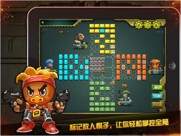 1、嚴(yán)肅而又華麗的游戲風(fēng)格:與四國軍棋充分契合的軍事風(fēng)格,讓您沉浸于四國軍棋的對局中無法自拔。2、方便快速的操控方法:直接點擊棋子移動,在iPad的大屏幕下操作輕松順暢。