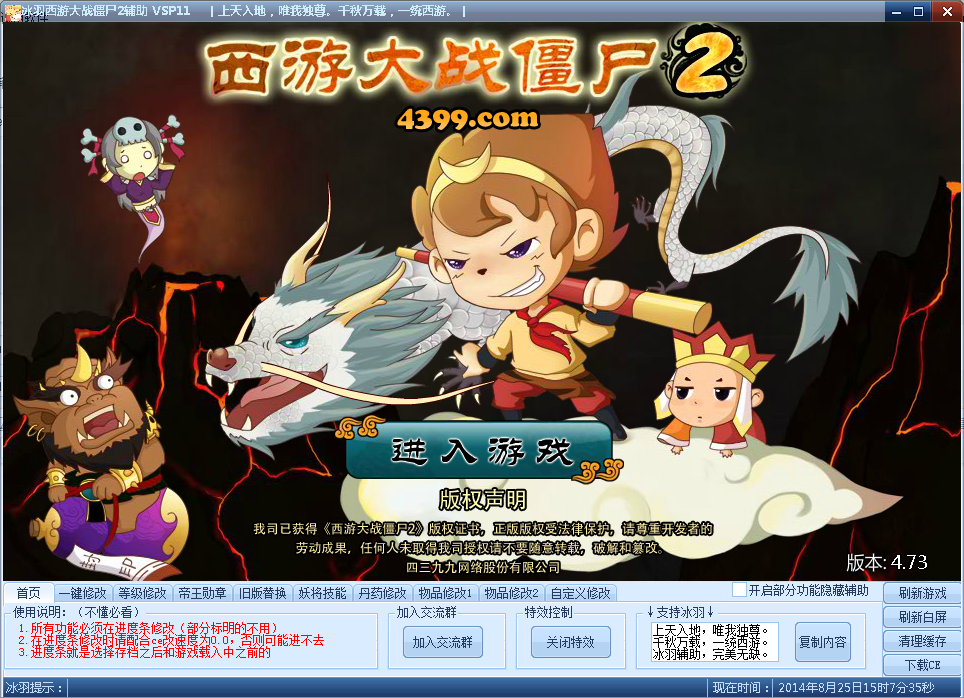 1、一鍵修改:改VIP6、修改PK點(diǎn)價格、100%強(qiáng)化2、等級修改:人物等級、妖將等級